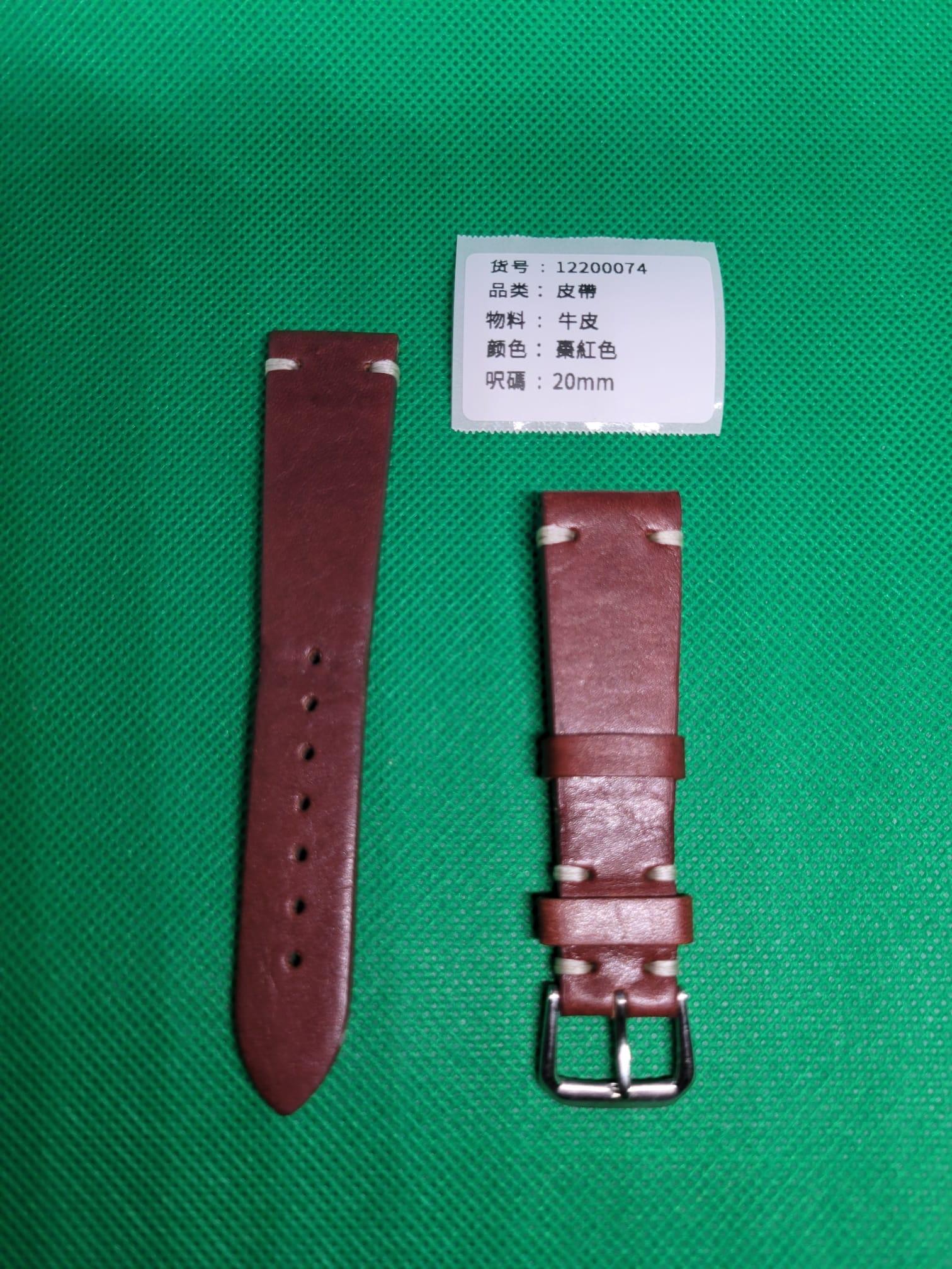 20mm棗紅色雙層牛皮錶帶