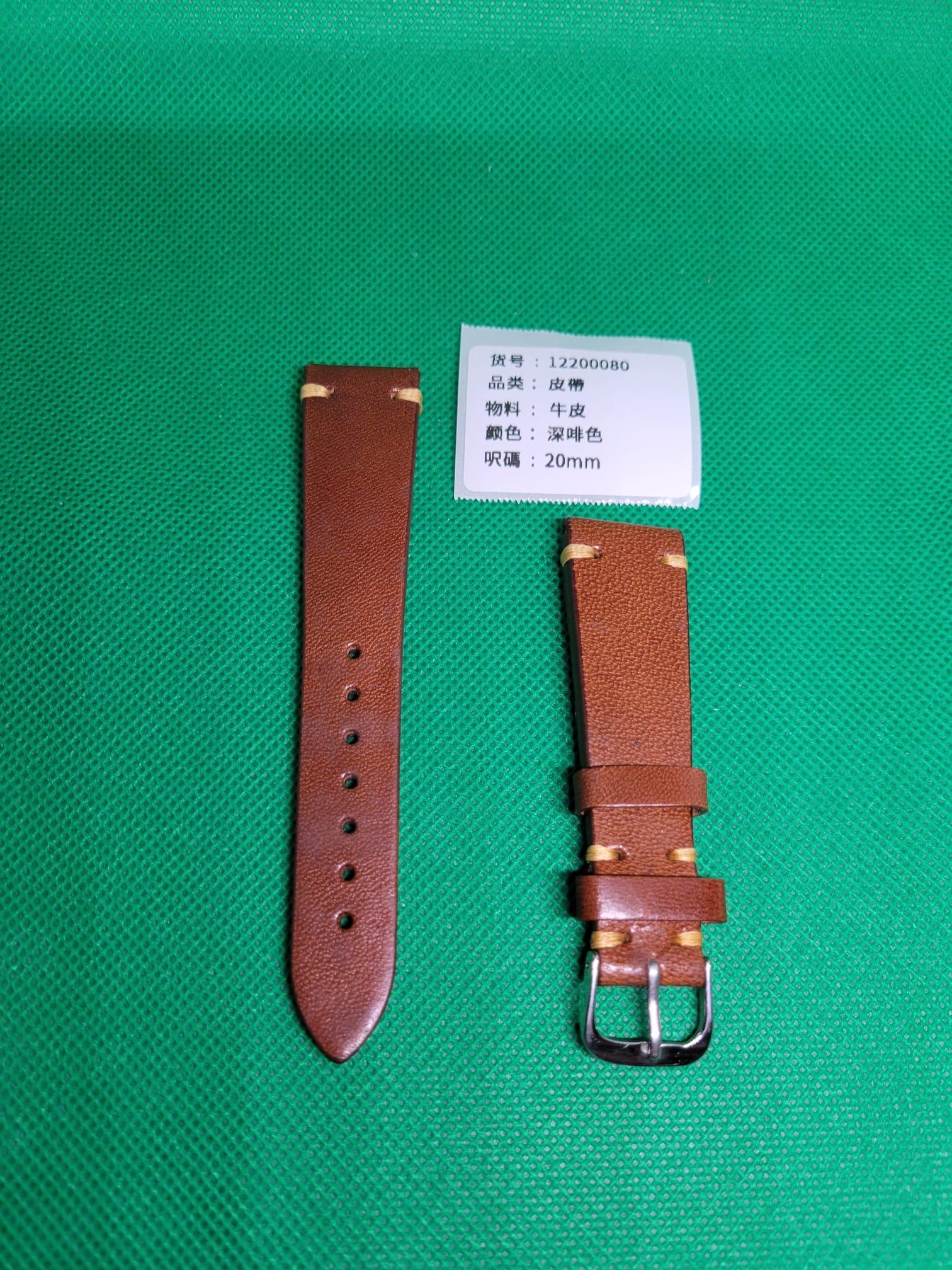 20mm深啡色雙層牛皮錶帶